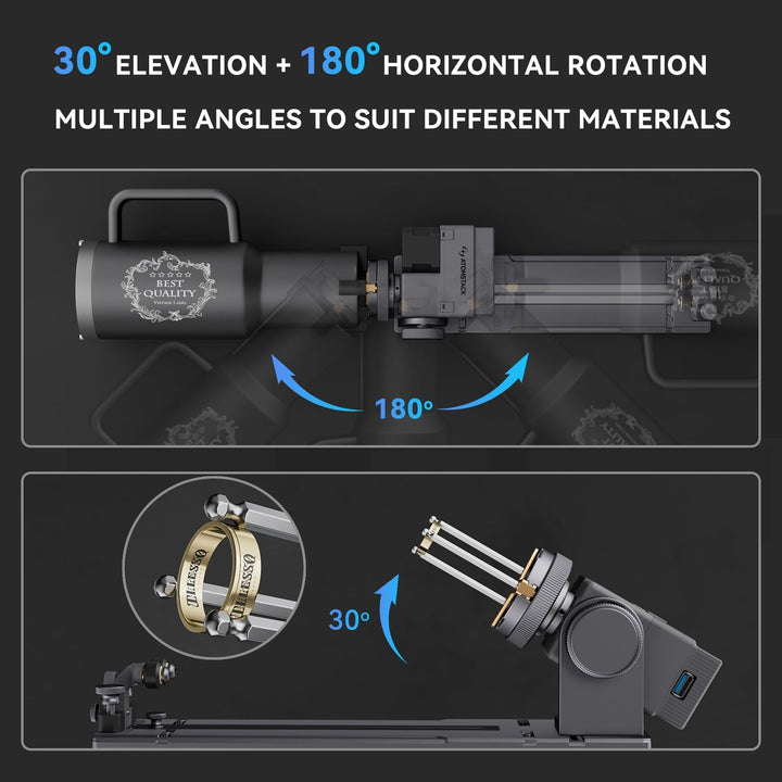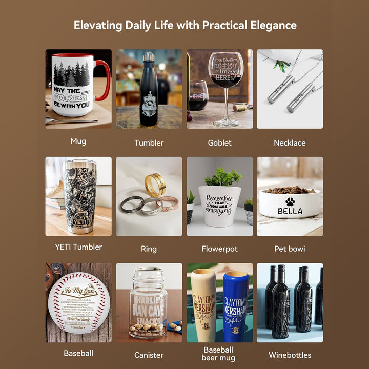 - Escenarios de uso mejorados: amplíe sus capacidades de grabado más allá de las superficies planas, trabajando sin esfuerzo con objetos de formas irregulares.