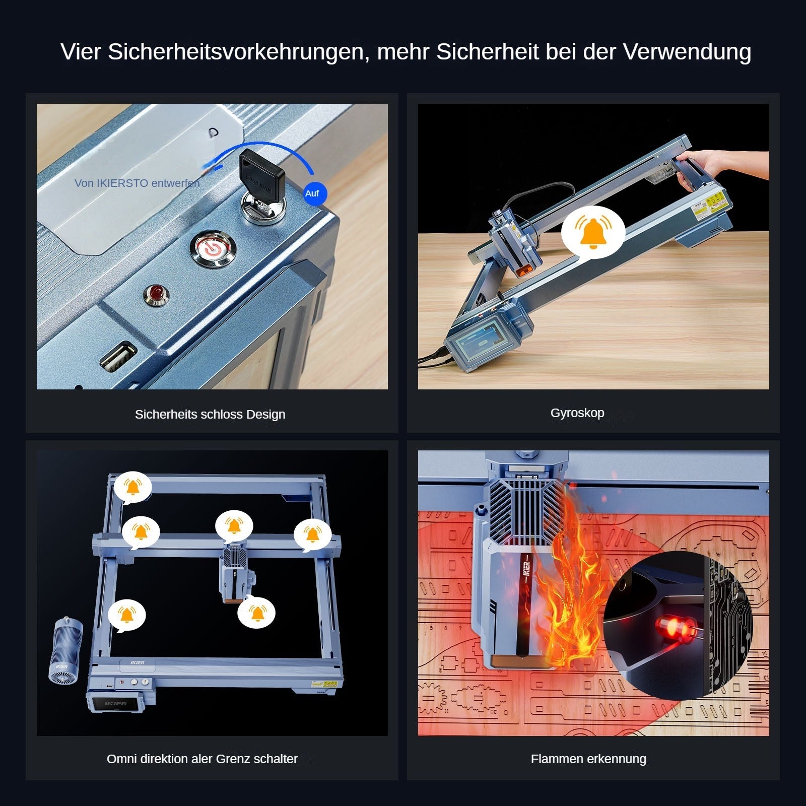 Graviergeschwindigkeit bis zu 800mm/s: Die Graviergeschwindigkeit der IKIER K1 erreicht bis zu 800mm/s, was 4 mal schneller ist bei other Maschinen in der Branche. Esta Geschwindigkeit hat bereits das höchste Niveau in der Branche erreicht und maximiert Ihre Produktivität in vollem Umfang.